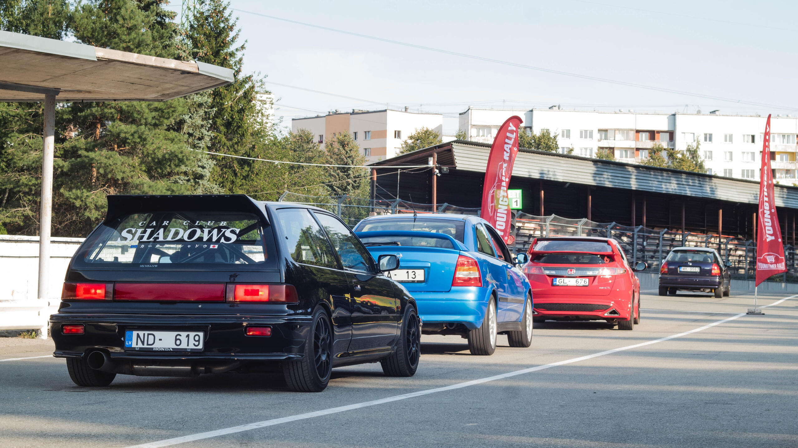 A large gathering of Japanese automotive enthusiasts next to Riga Car Museum organized by Youngtimerrally.lv